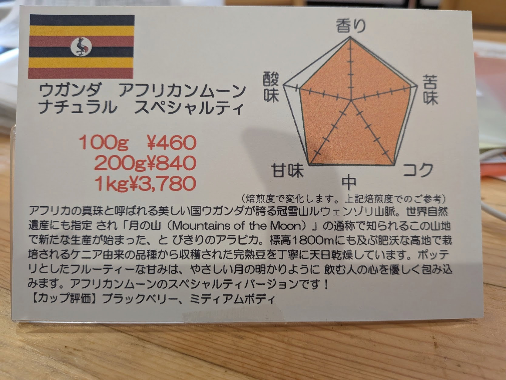 ウガンダ アフリカンムーン ナチュラル スペシャルティ
